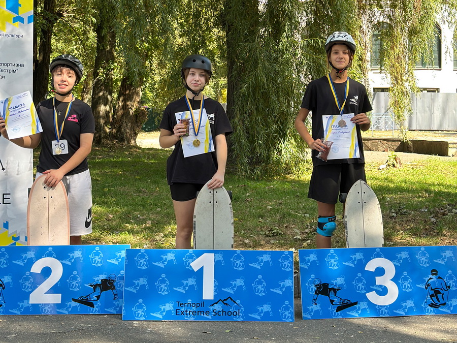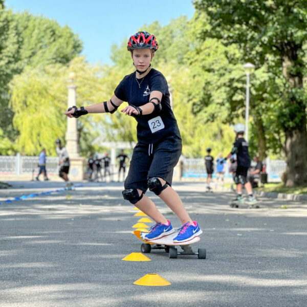 Молодші спортсмени на скейтах змагалися, проходячи смугу перешкод, а старші – змагалися у паралельному слаломі.